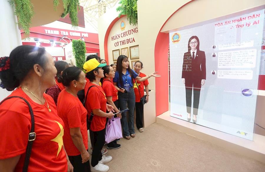 Người dân trải nghiệm ứng dụng trí tuệ nhân tạo “Trợ lý ảo AI trợ giúp pháp luật” tại Triển lãm Thành tựu đất nước “80 năm hành trình Độc lập - Tự do - Hạnh phúc”. Ảnh: Thái Khang