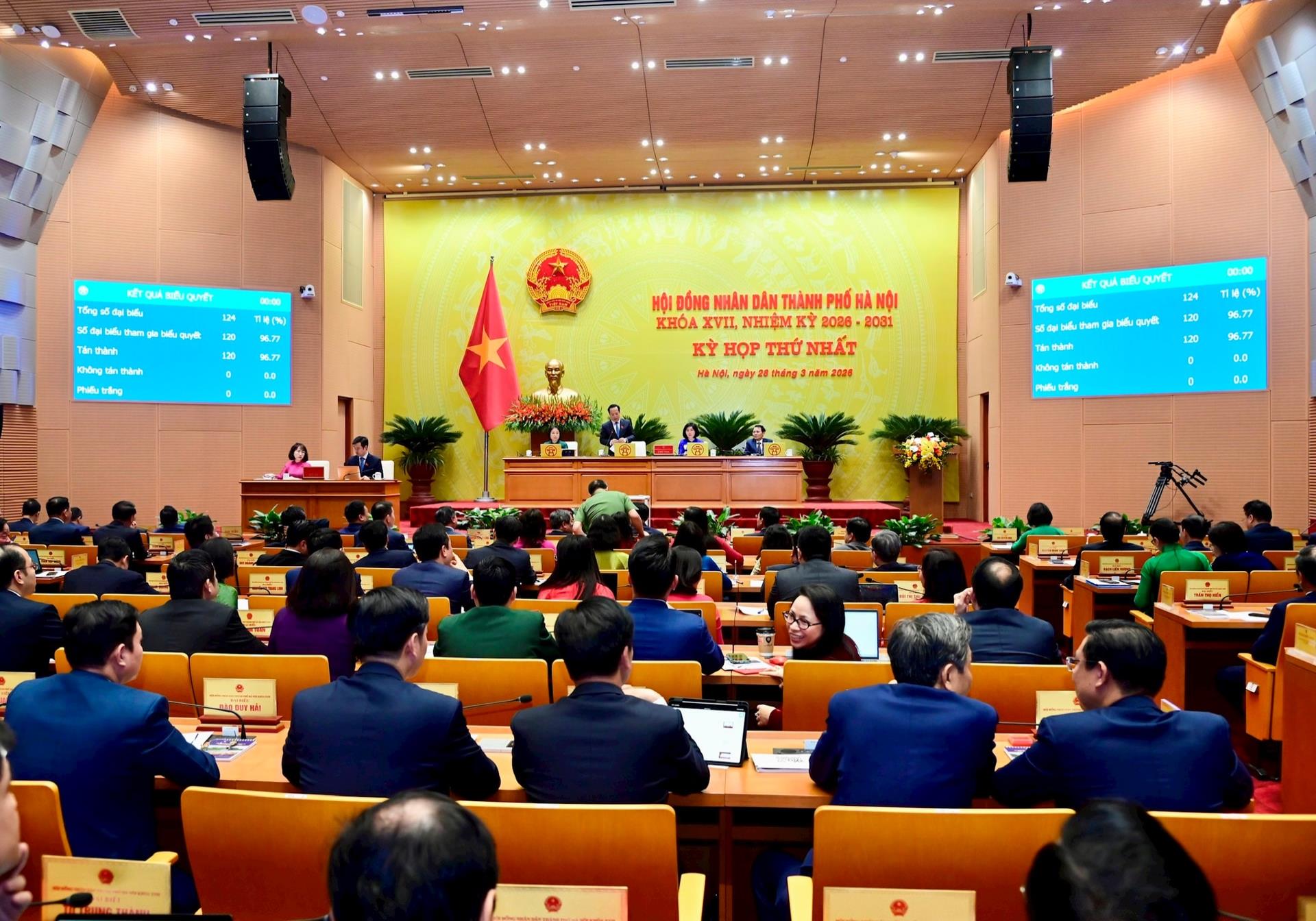 Thứ ba, kỳ họp thứ nhất HĐND thành phố Hà Nội khóa XVII đã thông qua “bộ khung phát triển” của thành phố trong 5 năm tới. Đó là các nghị quyết về: Kế hoạch phát triển kinh tế - xã hội 5 năm 2026-2030 của thành phố; Kế hoạch tài chính 5 năm thành phố Hà Nội giai đoạn 2026-2030; Kế hoạch đầu tư công trung hạn 5 năm giai đoạn 2026-2030.