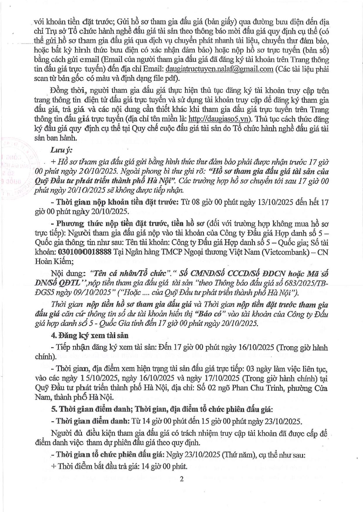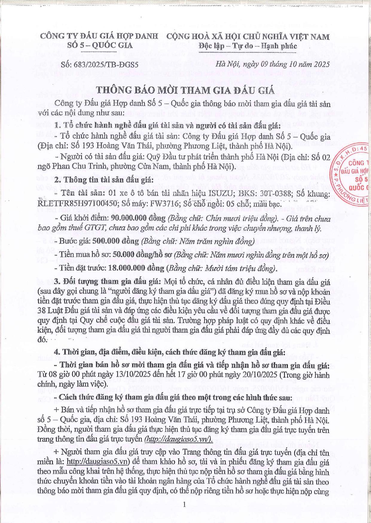 Thông báo mời tham gia đấu giá số 683/2025-TB/ĐGS5