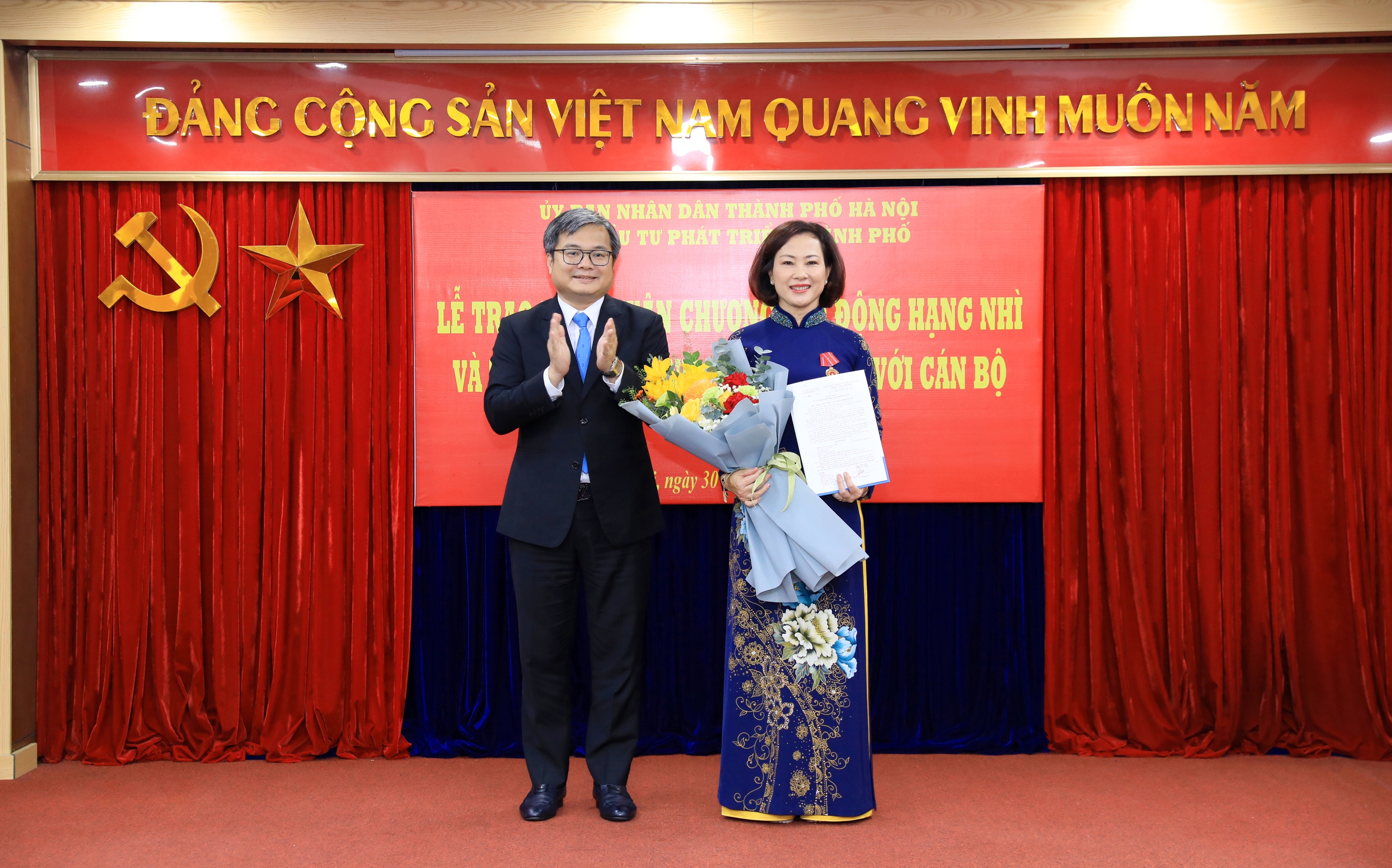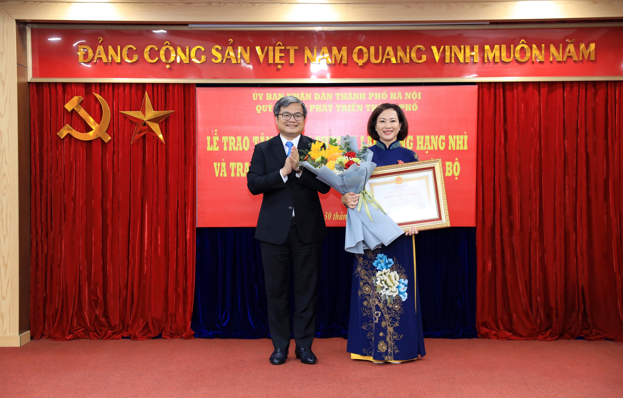 "Đặc biệt, tại buổi lễ hôm nay, đồng chí vinh dự được Chủ tịch nước tặng thưởng Huân chương Lao động hạng Nhì, ghi nhận những đóng góp xuất sắc của đồng chí trong quá trình công tác, góp phần vào sự nghiệp xây dựng và phát triển Thủ đô Hà Nội" - Phó Chủ tịch UBND Thành phố Trương Việt Dũng nhấn mạnh.